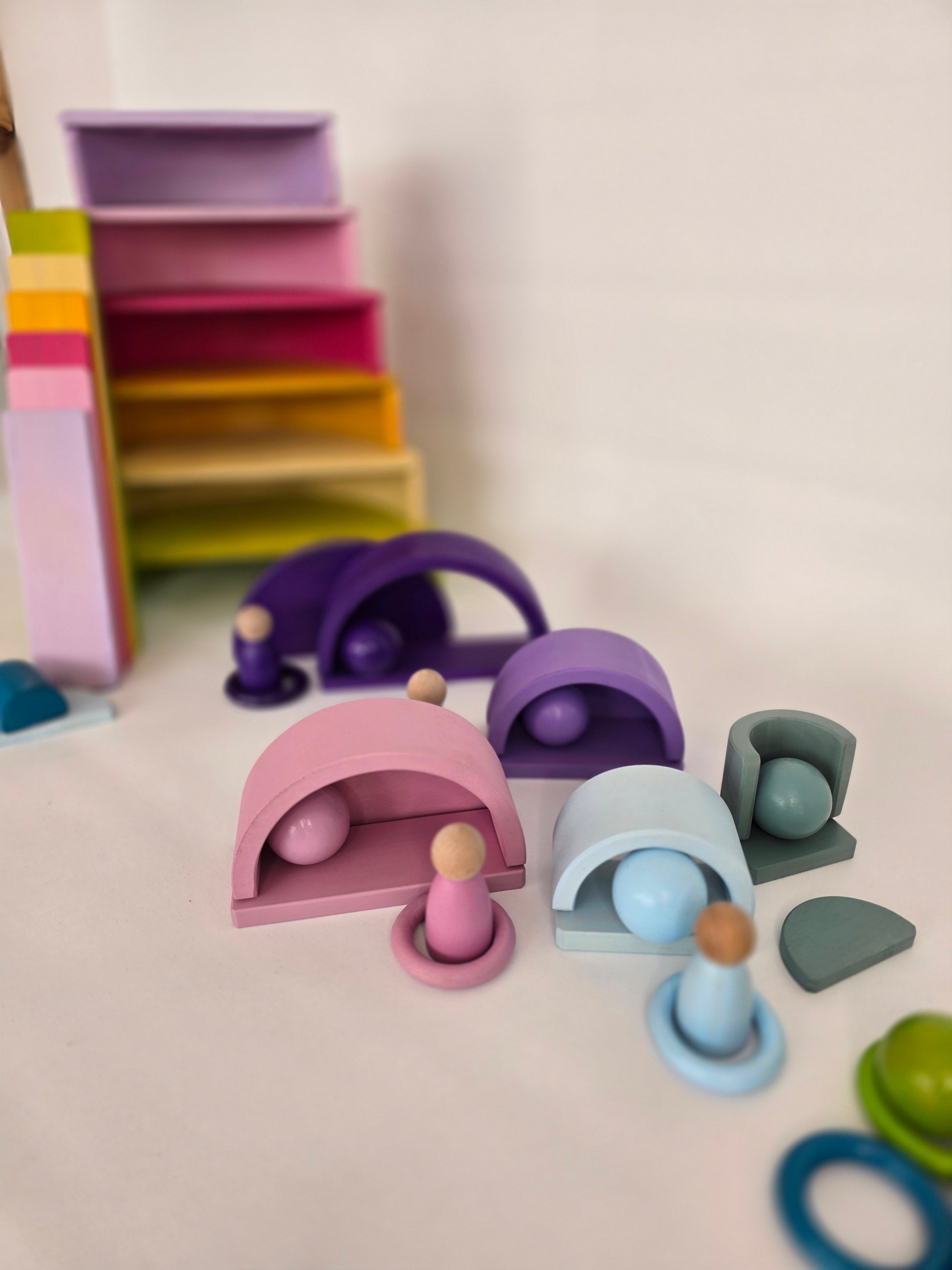 KirtKirt Ahsap | Waldorf Gokkusagi Seti| 70 Parca | 0-6 Yas | 29 cm | Gökkuşağı Tonları veya Pastel Tonlar