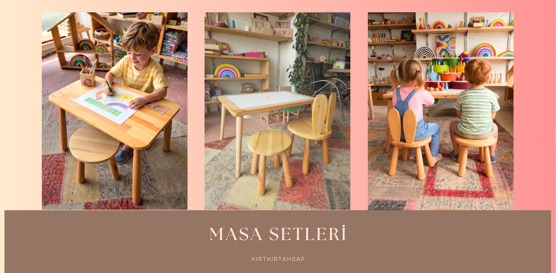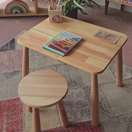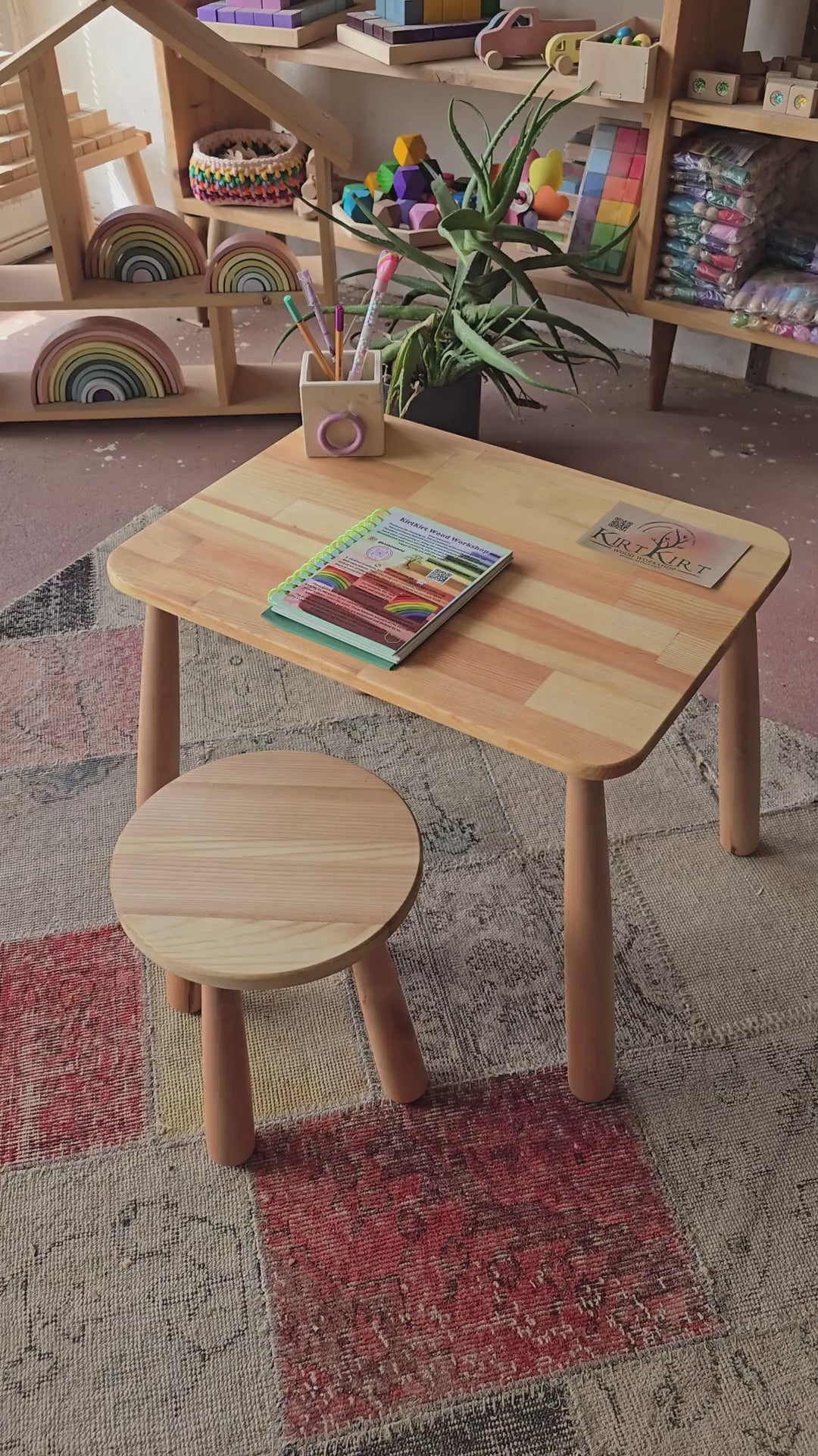 Montessori Çocuk Masa ve 2 Tabure Seti | 60x45 cm Doğal Ahşap Çocuk Masası (2 Tabureli)