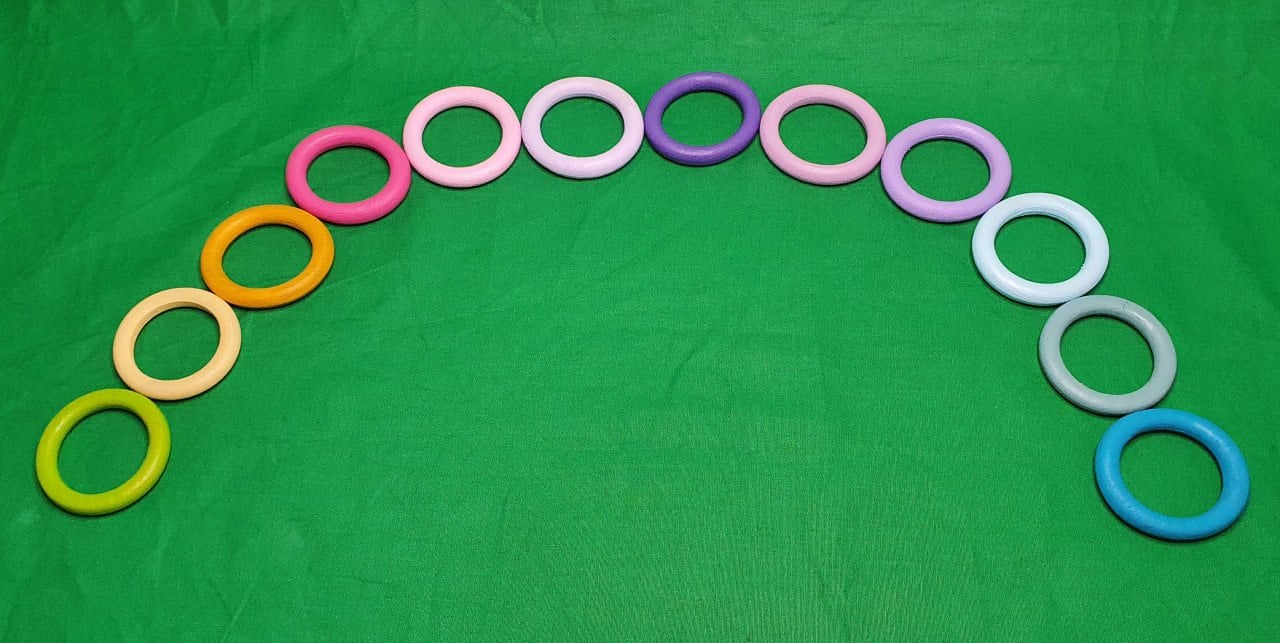 <p>Waldorf halkaları 12'li Set Pastel tonlar</p> <p></p> <p>12 adet pastel tonlara boyalı halka içermektedir.</p> <p>Halkalarımız fırınlanmış 1. sınıf kayın ağacından yapılmıştır.</p> <p>El işçiliği ile Türkiye'de üretilmiştir.</p> <p>El boyasıdır. Bu bazen tonlarda farklılıklara sebep olabilir.</p> <p>Küçük çocukların kendi hikayelerini kurgulayabilmeleri için mükemmel arkadaşlardır.</p> <p>Basit ve açık uçlu oyuncak.</p> <p>Önerilen Yaş : 12 + ay</p> <p>Problem çözme ve temel motor becerileri gelişimine destek olur.</p> <p>Ürünlerin hammaddesi ağaç olduğu için pürüzler, renk farklılıkları ve tamamen el işçiliği olduğu için ufak farklılıklar olabilir.</p> <p>%100 organiktir</p> <p>Oyuncaklarımız el işçiliği ile zımparalanmıştır ve pürüzsüz yüzeylere sahiptir.</p> <p>Oyuncaklarımızın sivri kenarları yoktur.</p> <p>Ürünün ölçüleri; </p> <p>Halkalar : 5,5 cm çapındadır.</p> <p>1 Karton kutu içerisinde paketlenmiştir. </p> |